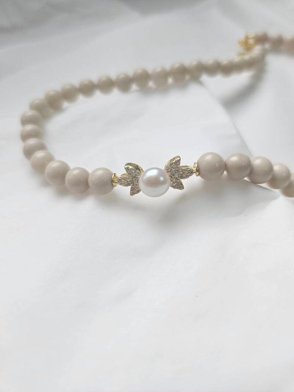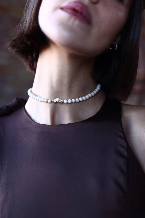 Una pieza que captura la esencia de la sofisticación natural. Este choker está elaborado con piedra de gueso, una gema natural que aporta un toque de serenidad y elegancia a cualquier look. Su cierre está cuidadosamente diseñado en plata bañada en oro, adornado con delicadas circonitas que aportan un brillo sutil y refinado. Perfecto para quienes buscan una joya que combine la fuerza de la naturaleza con un acabado de lujo contemporáneo.