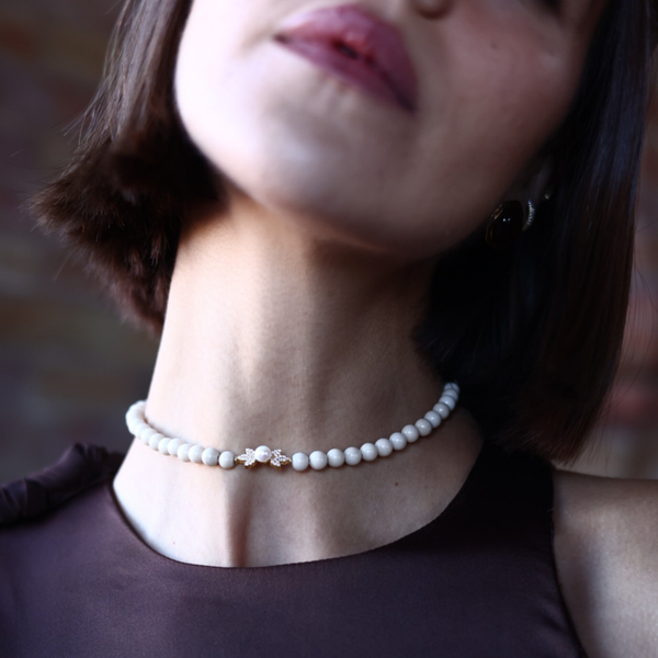 Sofisticado y sereno, aporta un toque natural que envuelve el cuello con elegancia.