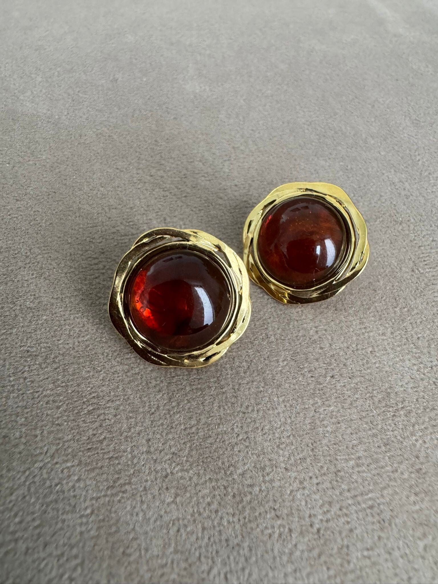 Un diseño con inspiración vintage que destaca por sus formas redondeadas y su estética atemporal. La base de acero aporta solidez y contraste, mientras que la piedra sintética en tono marrón añade calidez y profundidad, evocando la elegancia de la joyería clásica.