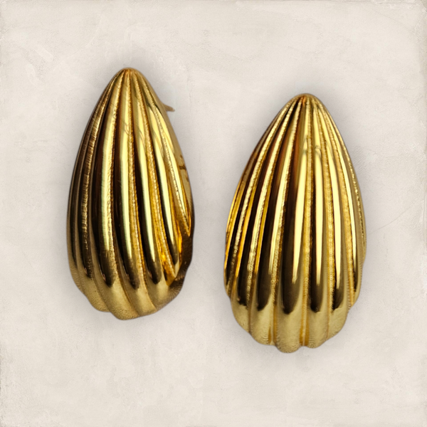 Pendientes en forma de concha, elaborados en plata bañada en oro, que combinan un diseño natural y elegante con un acabado cálido y sofisticado.Perfectos para aportar un toque fresco y chic, inspirados en la belleza del mar y el glamour atemporal.