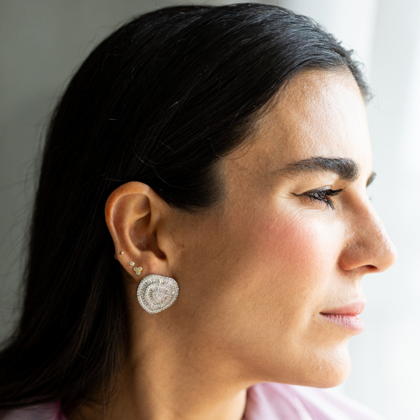 Pendientes en forma de corazón con acabado en rodio plateado, realzados con circonitas que aportan un brillo delicado y sofisticado. Su diseño que combina ternura y elegancia, creando una pieza versátil que aporta luz y feminidad a cualquier look, desde el día a día hasta ocasiones especiales.