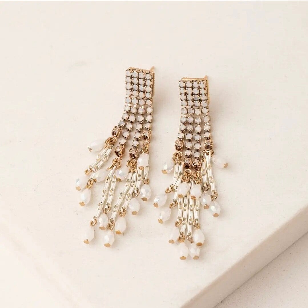 Ligereza y brillo que acompañan cada gesto, estos pendientes despliegan una cascada elegante de cristales, aportando movimiento y sofisticación.
