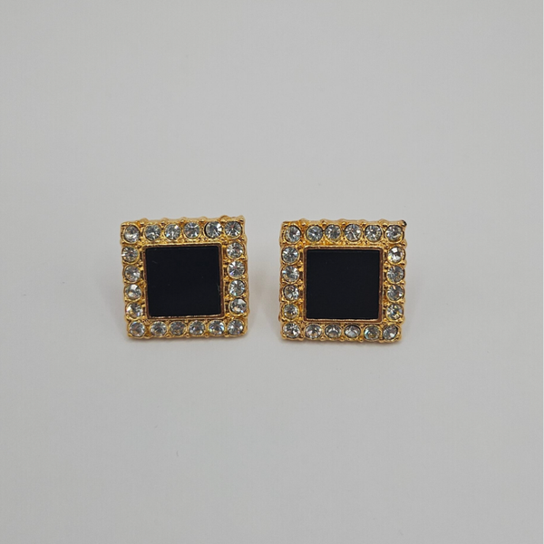 Pendientes de diseño geométrico con esmalte negro y delicados cristales que aportan contraste y elegancia. Una pieza sofisticada y atemporal que combina el brillo del oro con la profundidad del negro para un estilo refinado y versátil.